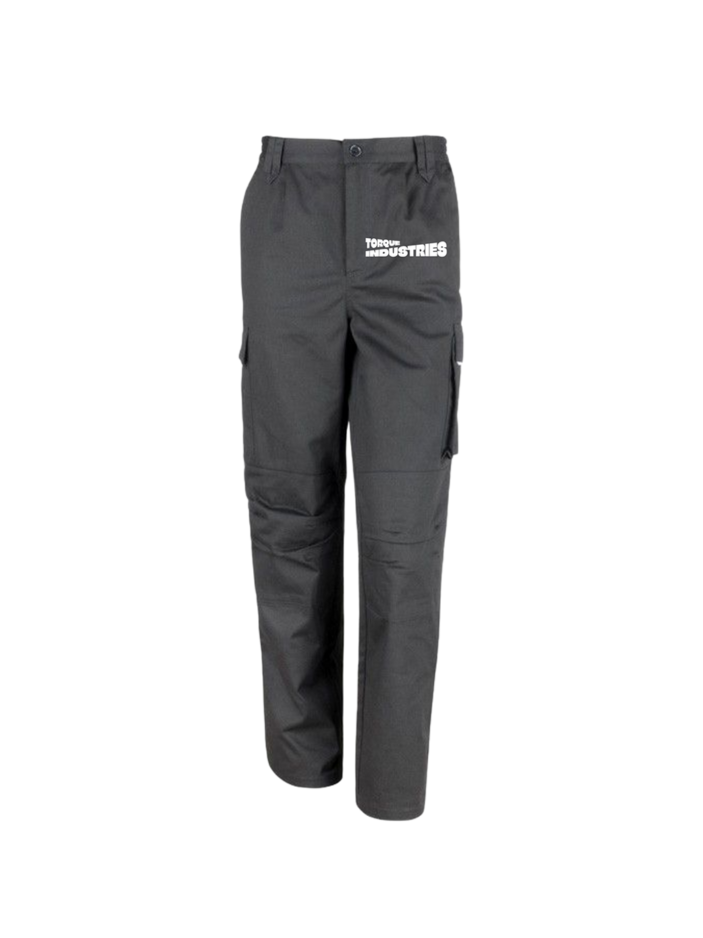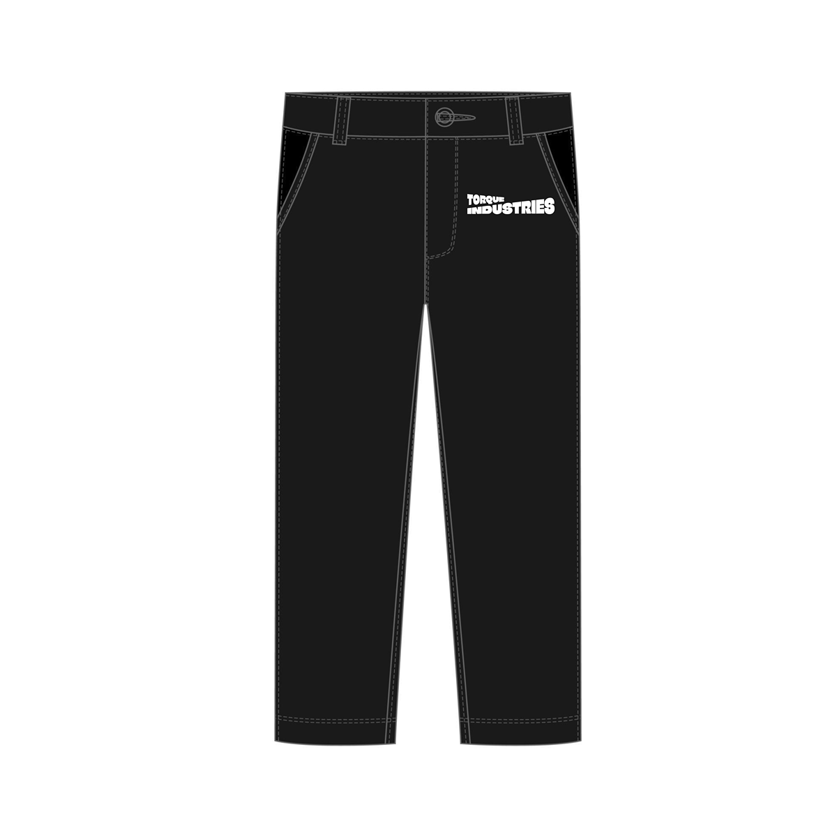 The ergonomic straight-leg fit provides unrestricted motion, while reinforced seams and belt loops ensure lasting strength. Functional front and rear pockets add practical storage without sacrificing the clean, structured silhouette. Finished in a matte black tone, the design is elevated by an embroidered Torque Industries logo on the upper thigh — a refined detail that represents the brand’s commitment to quality and craftsmanship.